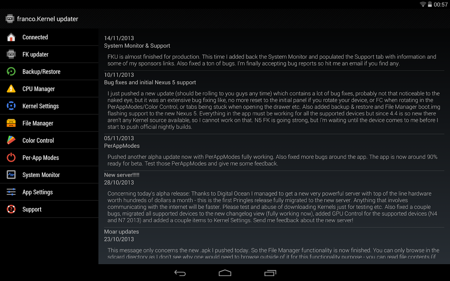 If you desire to help out with the app translations please visit this Crowdin link: https://crowdin.net/project/francokernel_updater